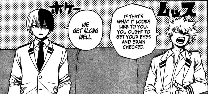 The U.A. students are back! Bakugo & Todoroki are interviewed after whoopin’ villain butt immediately after getting their provisional licenses. Shouldn’t Deku get an interview for beating down Overhaul? Maybe certain details about the mission are secret. Yeah, I guess I’ll go with that plot hole—erm—excuse.