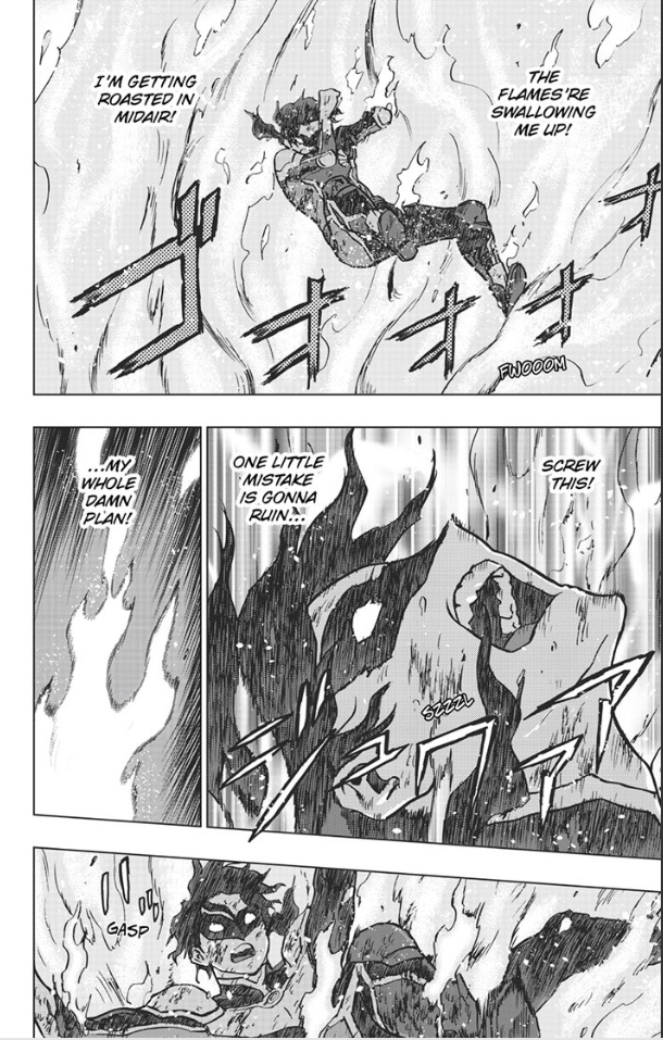 Okay, maybe not so much flying to safety as flying away, running out of energy, then plummeting to your death. So, how will Koichi and Pop get out of this situation? Well, is there anyone they know who could save them? Hm… Ingenium? No. Aizawa? No, no. Who is friends with The Crawler that can fly? That’s right, y’all, Captain Celebrity! Could Makoto have convinced him to return to Japan to help out Koichi and Pop? It’s possible, but that would put the dear Captain in a particularly bad position with the Japanese Government. Hm, maybe Koichi will have enough energy to get himself and Pop out of harm’s way. Guess, we’ll see.