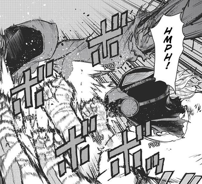 It’s Hoodie talk time. O’Clock suggests he has a souped up version of cellular propagation, which is kinda funny because that’s close to what I first thought Re-Destro’s quirk was. Anyway, it looks like Doctor Ujiko modified Hoodie so much his original fighting style doesn’t work. In the end, the bad doctor and All For One only care about power for their Nomu soldiers. Technique need not apply.