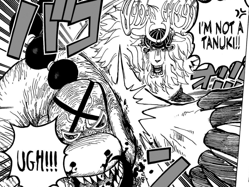 Speaking of bathrooms, CP-0 dumps more exposition in the plot revelation toilet bowl. This time about Momonosuke’s artificial devil fruit. Basically, confirming it’s made from Kaido’s Bloodline Elements. I’m guessing it’s his devil fruit DNA or some crap. Basically, Momo and Kaido have the same devil fruit, I guess. Sure. Why not?