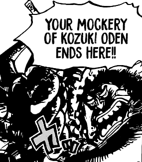 First up, Od*n. *SHUDDERS* Thank Enel he’s still dead! Like many had predicted, the former Whitebeard and Roger pirate was a living painting controlled by Kanjuro. Yep, turns out a notable villain in this arc didn’t get off-screened. Shocking, I know, but now he can get a proper death. Death, you say? Yeah, I don’t think Kanjuro’s making it out of this arc alive. But, then again, this is One Piece. Hmm…I’d say YES. He’s a dead man. Not by Yamato’s hand. He’ll protect Momonosuke long enough for Kin’emon to make the killing blow.