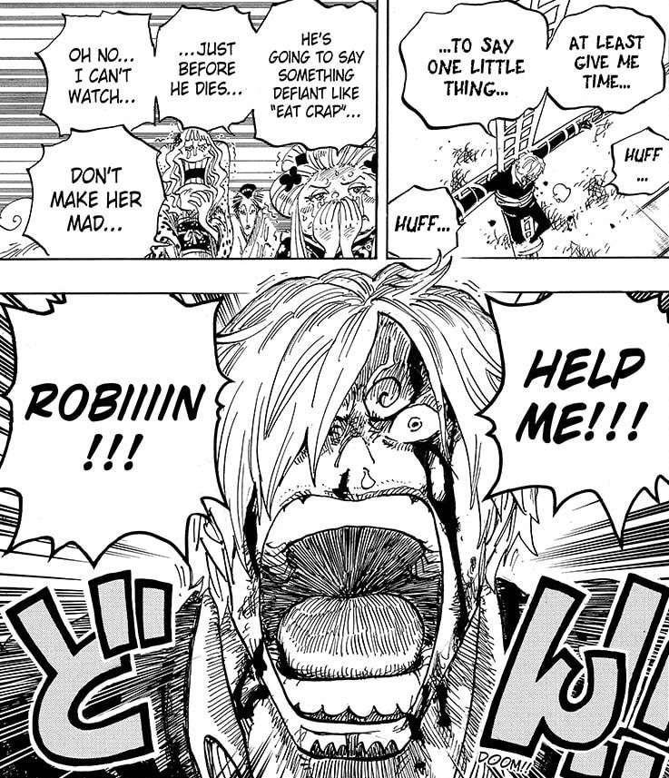 Ah! I remember now. Robin’s getting a fight. I’d be lying if I didn’t say I wish it was a one-on-one against Black Maria, but Oda’s being Oda so what can you do? Speaking of which, Oda must’ve been really horny coming up with this chapter. Boobs galore. We get it, Oda. You. Love. Titties.