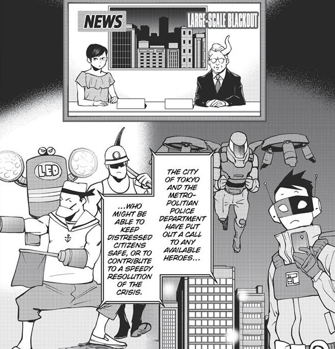 The biggest being when’s help coming? This chapter essentially removed All Might from the equation. As far as the public and he knows, the Naruhata blackout wasn’t caused by a villain and while there have been reports of disturbances, nothing on the level of mass hysteria and chaos has been reported (All part of No. 6’s plan.). Basically, the Naruhata blackout isn’t worth the Number One hero’s time according to the news. Which is fine because that’s where Knuckleduster will eventually come in.