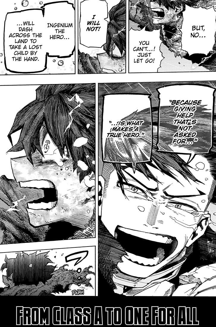 Deku had to be shown Class A isn’t weak. That they can keep up with the power of One For All. It looks like they finally got through to him. Seriously, do you know how insane it is for Ida to grab Deku going at Faux 100% speed? That’s quite the feat! Props to Ida, Uraraka, Bakugo and the entire freaking class for pulling that off. Passing grades all around!