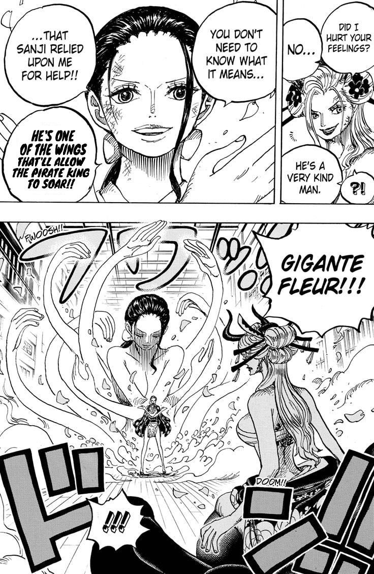 I say semi-triumphant because her fight hasn’t concluded. And, yes, I wish it could’ve been just Robin against Team Black Maria but the Straw Hat Archeologist works surprisingly well with Brook. We get to see what the duo have in common (a painful past) as well as how their fighting styles compliment each other. This is a true team up which could’ve easily been The Brook Show featuring Nico Robin. Safe to say, I love this fight!