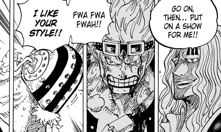 I really hope the Fire Cyborg/Sword Feet fight is a 2-on-2. I love it when Sanji and Zoro are forced to work together. The fight will also play on King and Queen’s strained relationship. While Diable McStab can indeed put their differences aside, can Heavy D. Goth do the same? We shall see.