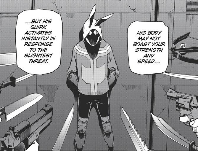 Plus, the audience has to understand why The Crawler is winning. Sure, I knew, but My Hero Vigilantes’ covered in subtlety. This is the creators’ way of making sure everyone’s on the same page. And what is that page? Quirk Evolution + Fighting Style.