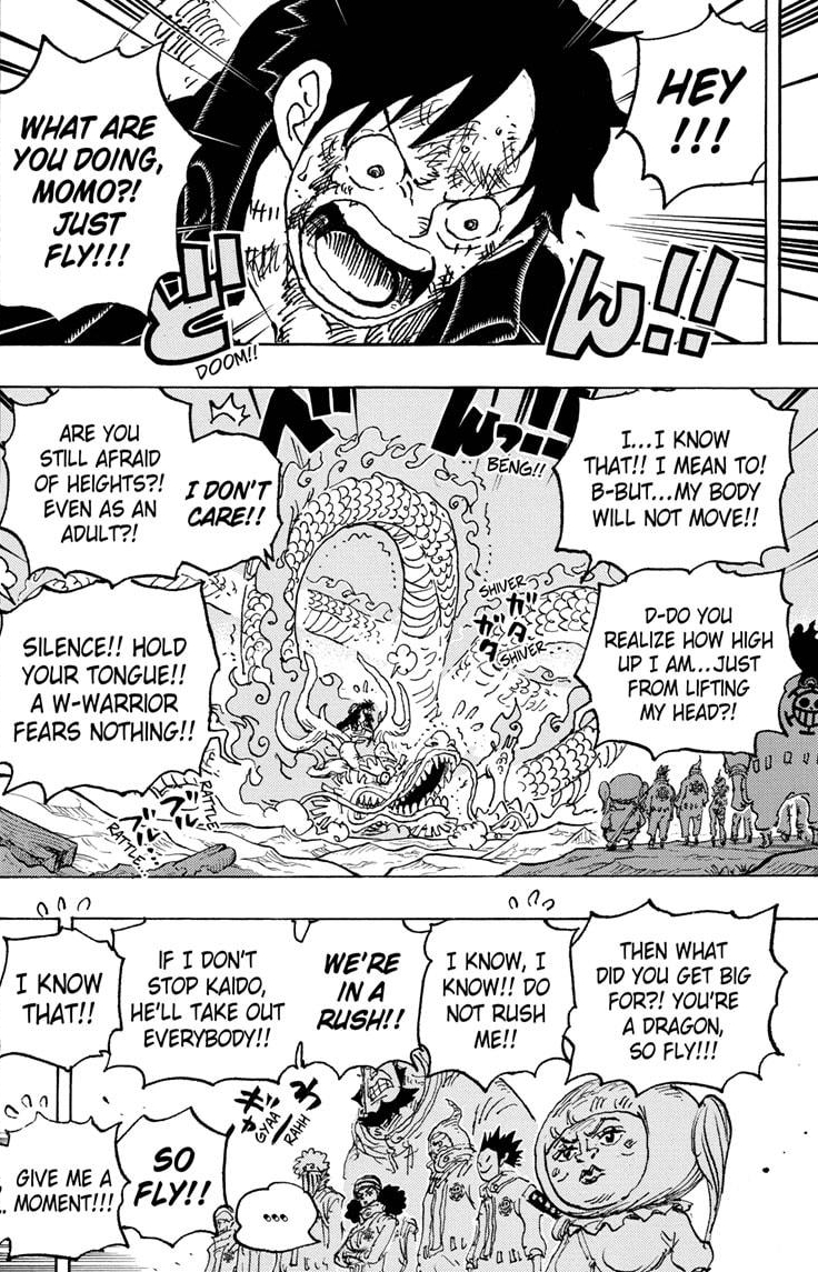 This was a good chapter! I love Luffy and Momonosuke’s banter and reintroduction into the fight and I care just sightly more about Yamato. Poor Kaido. He thought he was the only dragon in town. But then a younger, cuter dragon appears. Captain Kaido already made an appointment with his plastic surgeon. After they’re done, he’ll look at least ten years younger with fresh hair extensions. Va-va-voom, baby!