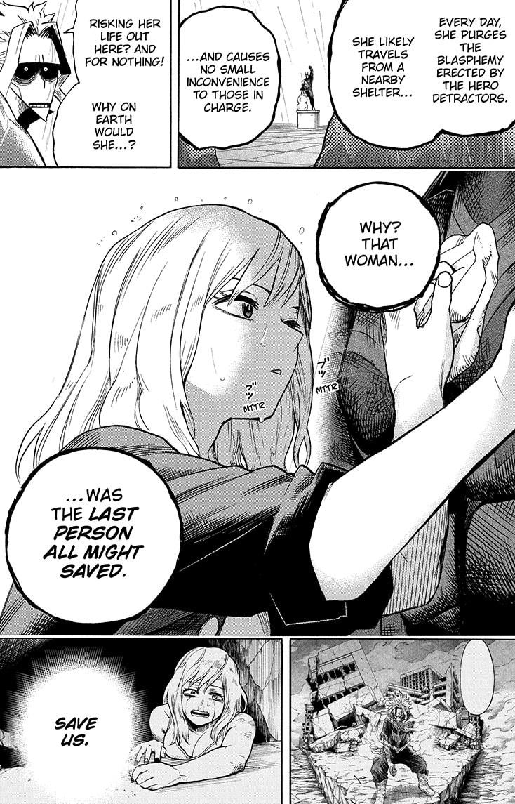 Toshinori? Will he still die? I’m not so sure anymore. But, if I had to guess: Yes. He’s still on the chopping block. The only question is how and when? Well, its gotta be AFO or Shigaraki who kills him, but other than that, Toshinori will continue to give everything he’s got into raising Deku. Including his life, if that’s what it takes…just like Nana Shimura.