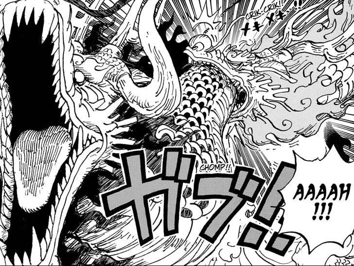 Show, don’t tell. Luffy’s giving Momo courage through his actions, not just words. Good thing too, since Momo will have to either wrestle control over the floating Onigashima from Kaido and/or prevent it from crashing on top of the Flower Capital, killing everyone there. THAT, kiddos, is how Momo wins the respect and acceptance of the citizens of Wano. No one’s objecting to him becoming Shogun after doing that!