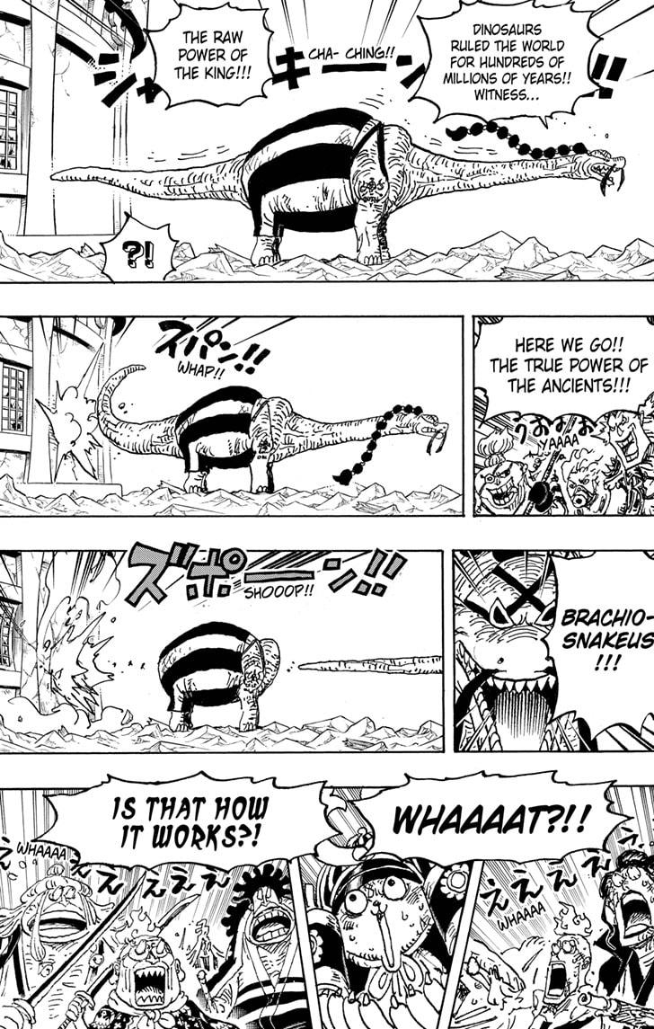 Queen has a snake mode… I always said Oda’s on that good shit. Now, do you believe me?! I don’t know where to begin with that form. Just gonna say it’s weird in all the right ways. Oda is an example of a writer who puts his story first, no matter what. The One Piece world is how he wants it. Period. Gotta respect (and criticize when warranted) him for that.