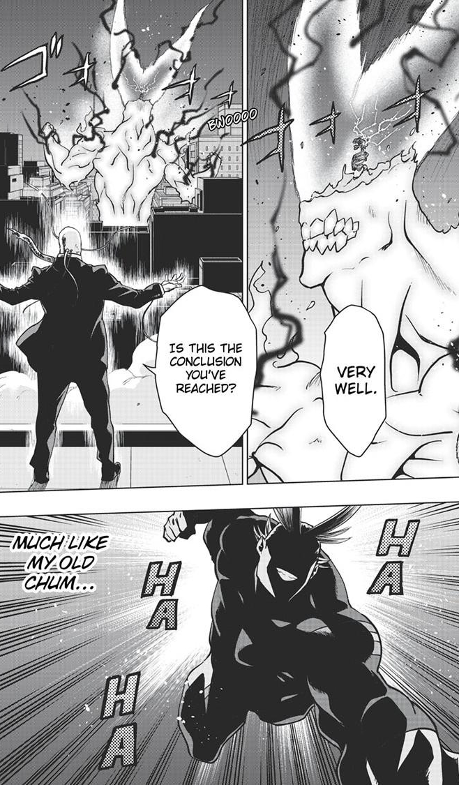 I would love to see Team Aizawa save the day. Wouldn’t mind Mirko showing up either. But, most likey, All Might will save the day. That’s fine too. All For One is backing Number 6, it’d be a nice parallel seeing All Might support/save Koichi. Number 6 the villianous hero mentored by AFO. The Crawler, a law breaking vigilante inspired by All Might. In the end, it all comes back to the number one hero and villain.