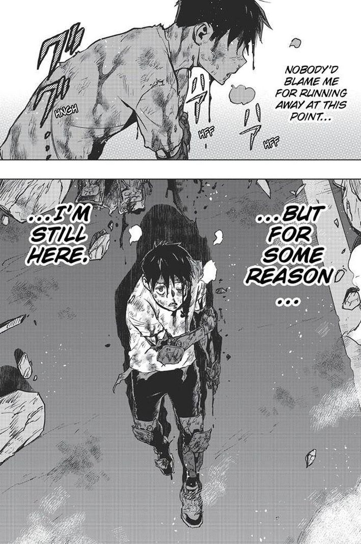 Kochi’s All Might hoodie, essentially his vigilante costume, getting destroyed, is symbolic of where he currently is as a person. He’s no longer reliant on it be a hero. Koichi IS a hero. He’s taking on Number 6, not because he has to, but because it’s the right thing to do.
