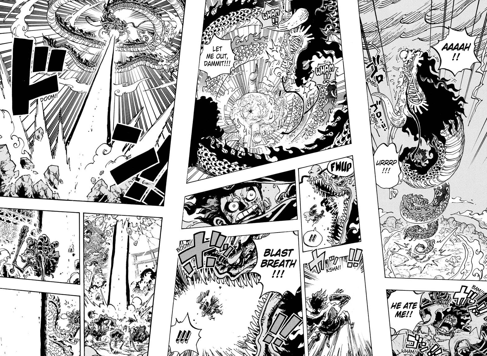 Luffy lost! For now, anyway. Only one option left: Gum-Gum awakening! There’s been way too much build up for it not happening here. And frankly, Kaido’s so powerful, it’s gonna take something new from Captain L to take him down. Not sure how our favorite rubber guy’s gonna access that power, but the next four to five chapters are gonna be interesting. Kaido’s defeat could end up being one of the best moments in all of One Piece. Yeah, I said it. Start readjusting your top 10 One Piece fights now, because this fight is gonna end with a galactic bang.