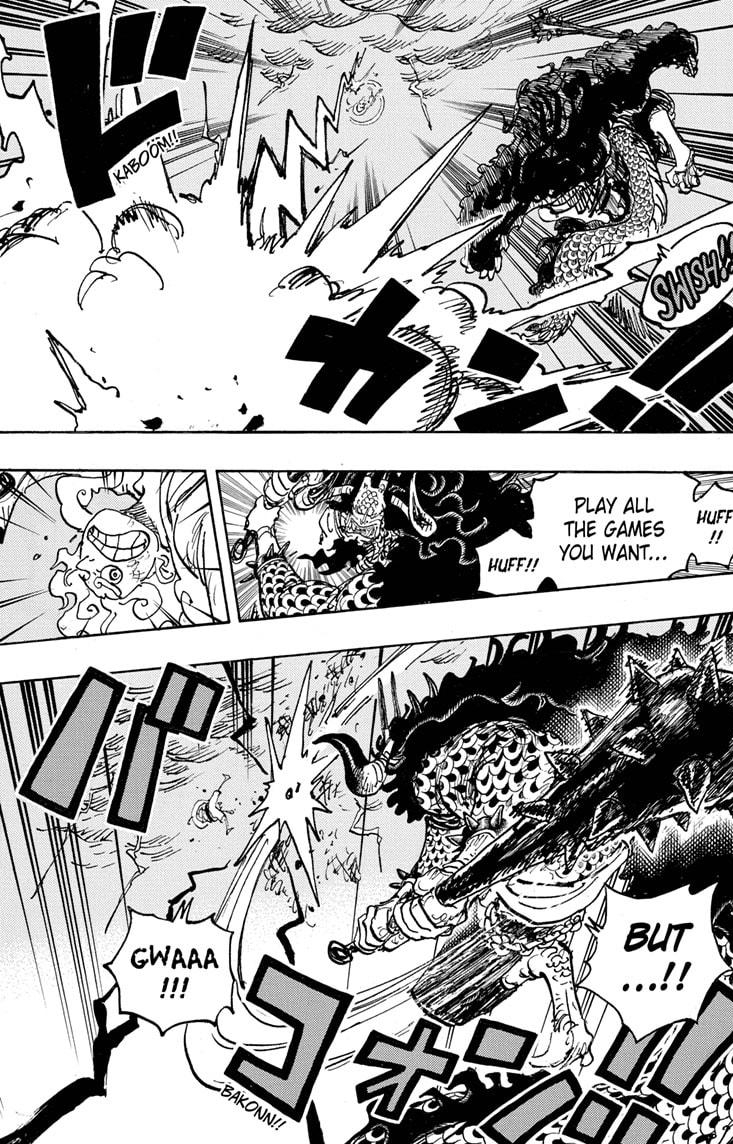Luffy’s taking a LOT of damage from Kaido. I guess Gear Five is an uber damage sponge like all other top-tier zoan fighters. How exactly will Luffy’s fights go from here? What’s Luffy VS Blackbeard gonna be like? At this point I expect Luffy to slam BB with the entire Redline then smack him with the moon.