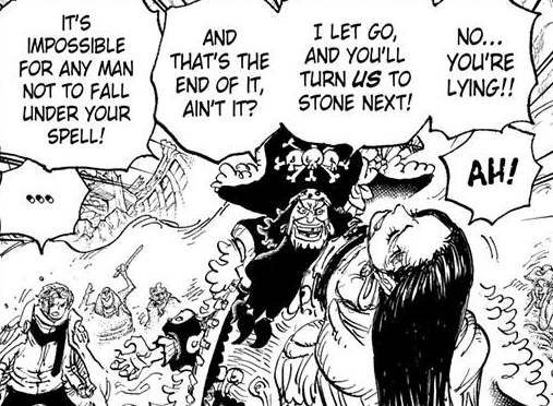 Why does Blackbeard want Hancock’s power? Does he want to give it to a member of his crew? Or, is it simply too broken a power for anyone not on his team to wield? I’d say it’s the second reason. Can’t have instant KO devil fruits like that putting Teech’s plans at risk. Basically, Boa Hancock is a liability who had to be taken off the board.