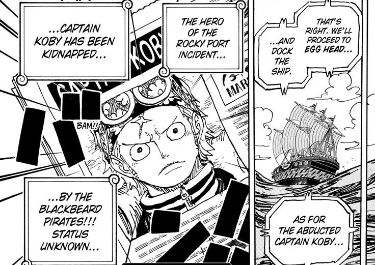 Well hello there, Blackbeard! How’s you and you’re 3.996 billion berri bounty? Geez, that’s high! Almost like you’re gonna be the final antagonist or something. So, why did Blackbeard kidnap Koby? Or did Koby go with Blackbeard willingly? Maybe the plucky naval officer wanted to speak with ex-admiral Kuzan? Hmm…