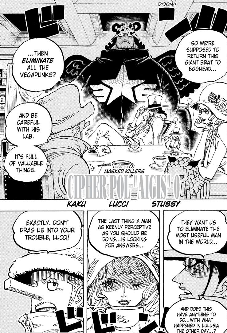 Is CP0 the main villains this arc? Hahaha! No way! Lucci’s a threat but he ain’t final boss worthy anymore. Maybe one of the Vegapunks will be the big antagonist. Or something they created. Or an Admiral. Whoever it is, it won’t be Lucci.
