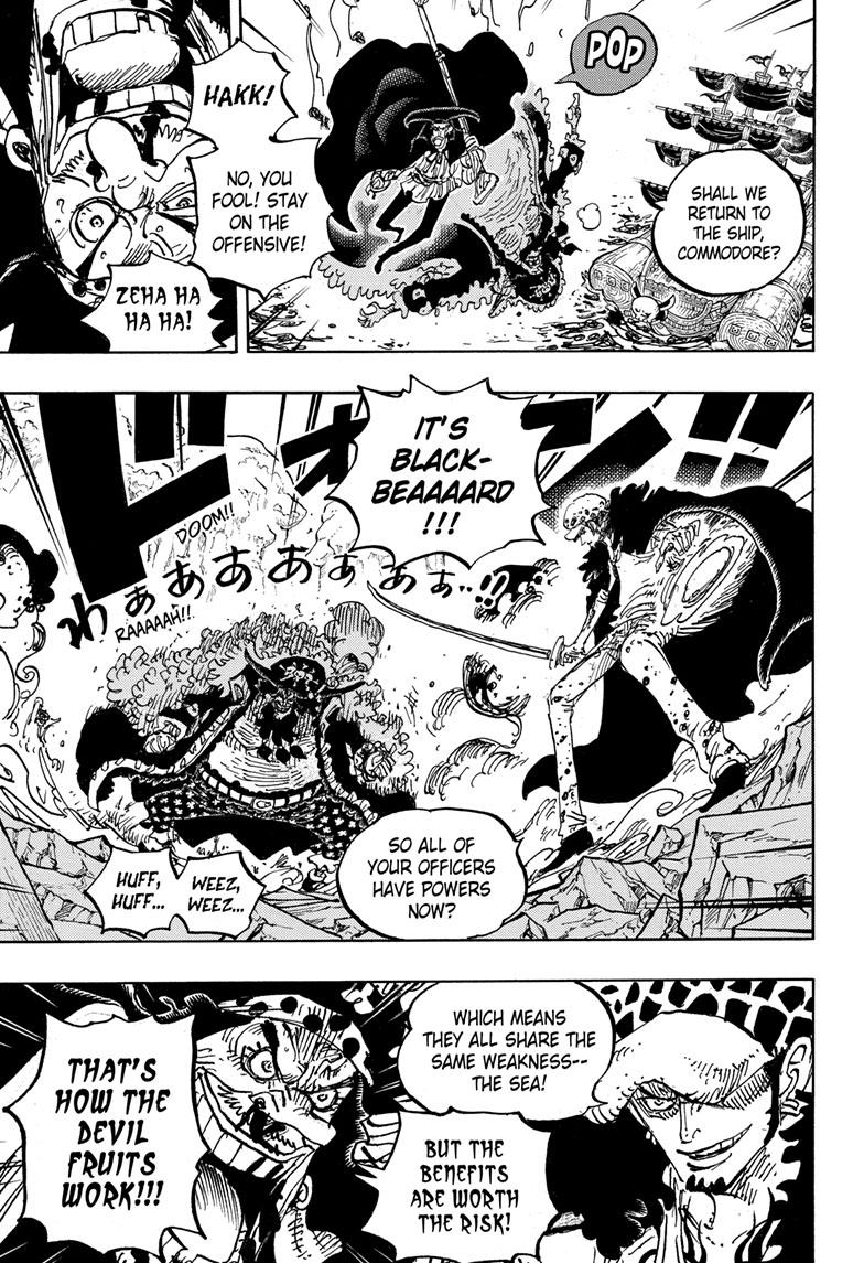 This was a good chapter! Blackbeard, Vegapunk, what’s not to love? And I bet Kuzan’s the one who tipped off the Navy about BB and Law’s fight. How many times does Blackbeard have to tell you, Kuzan, not to upload battles to Instagram as they happen? Some folks never learn.