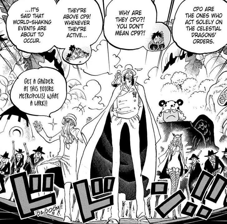 More developments must be happening. Not saying Lucci isn’t stronger than he was in the Enies Lobby arc, but so is Luffy. Lucci’s not beating the Straw Hat captain at anything other than tic-tac-toe anytime soon. Maybe Sentomaru’s the main antagonist? He’s a marine officer now. His loyalties may side with the Navy. And with the Vegapunks giving him control of the Seraphim, he’d have the perfect opportunity to take out most of the science eggheads. Plus, it’d give the Straw Hats opponents to fight. So, yeah, put me down for Sentomaru betraying the Vegapunks.