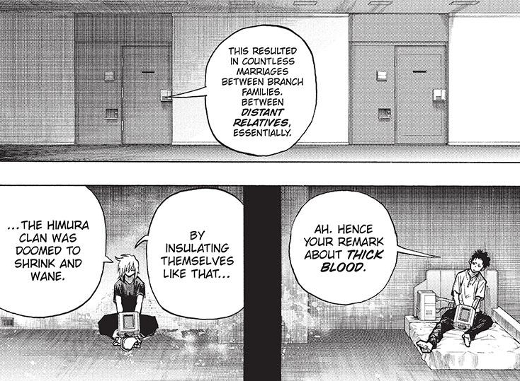 Can’t say I care about Compress’……. ANYTHING. And Geten being a Himura was just Horikoshi confirming a Fan Theory just to tie everything up. Don’t care what they’re about to talk about; let’s just get to the part were we kill the Hand Monster Already!!