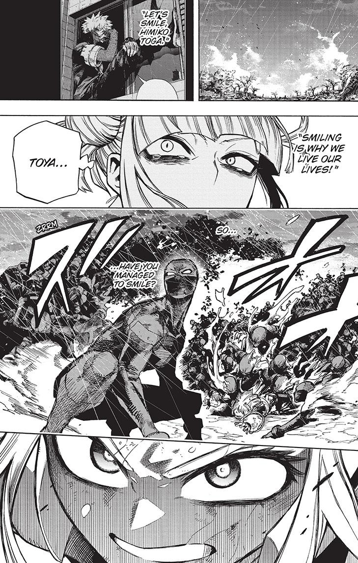 This chapter does confirm for me none of the League of Villains members in this arc are dying. Fire Crotch Toya’s on ice, no way is Toga dying, and Shigaraki’s being setup to be saved by Deku. Fine. But the story needs to be good and, overall, I don’t think that’s the case.