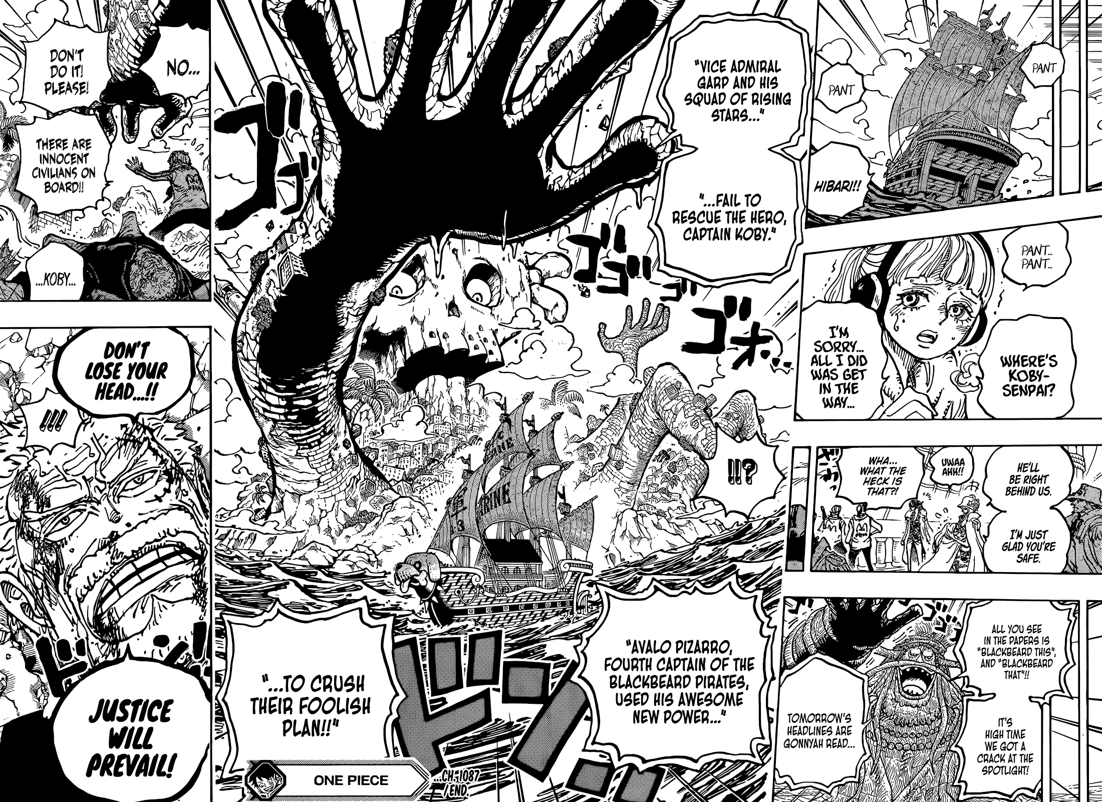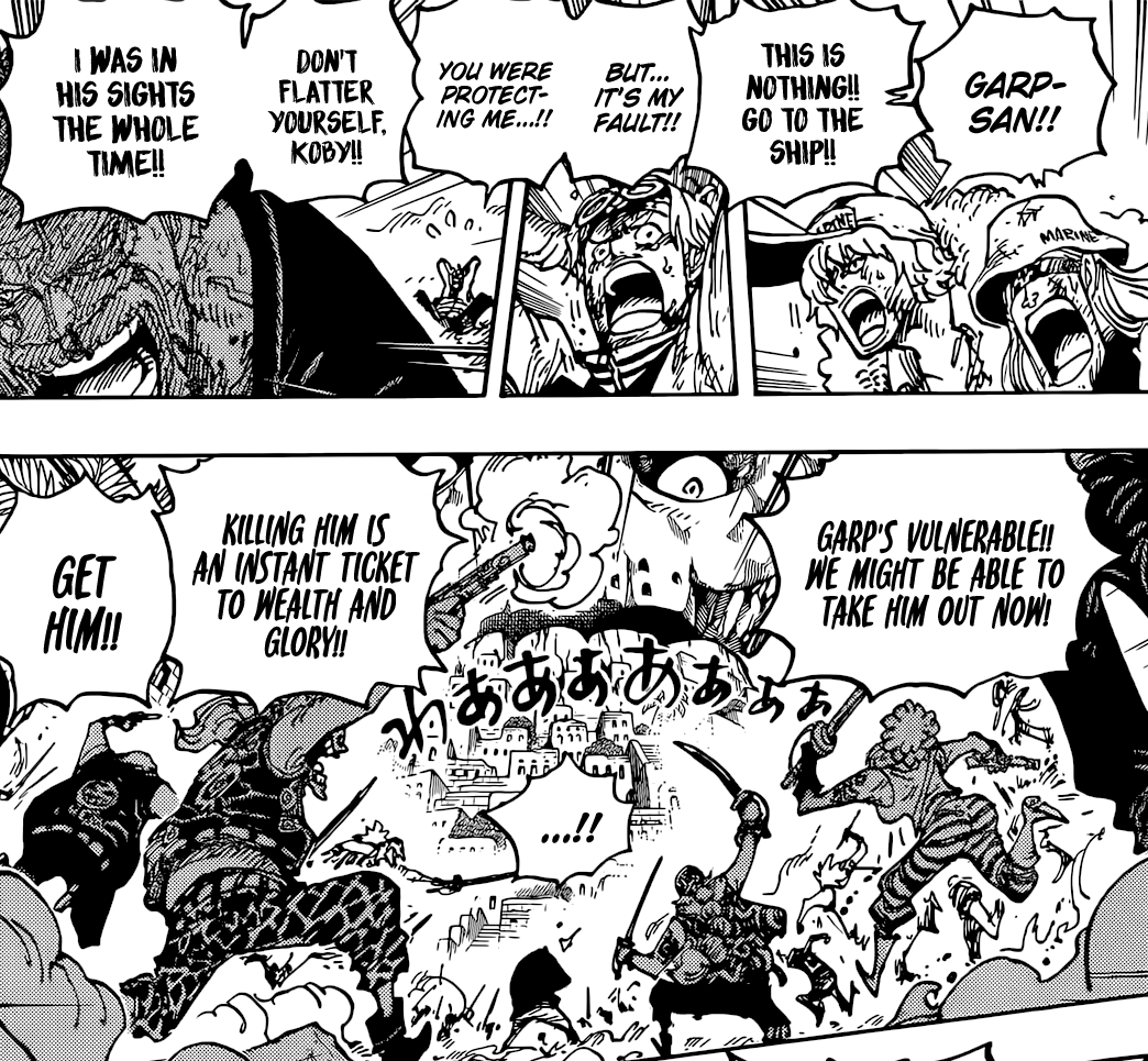 Looking at it; Garp IS 3-For-3 on raising powerful enemies of the World Government. I doubt Koby and Helmeppo will make it 5, but I don’t think that Koby is gonna stick with the Government the whole way through. he already showed defiance at Marineford; will he still stick by them when he finds out Marie Geiose’s Big secret?