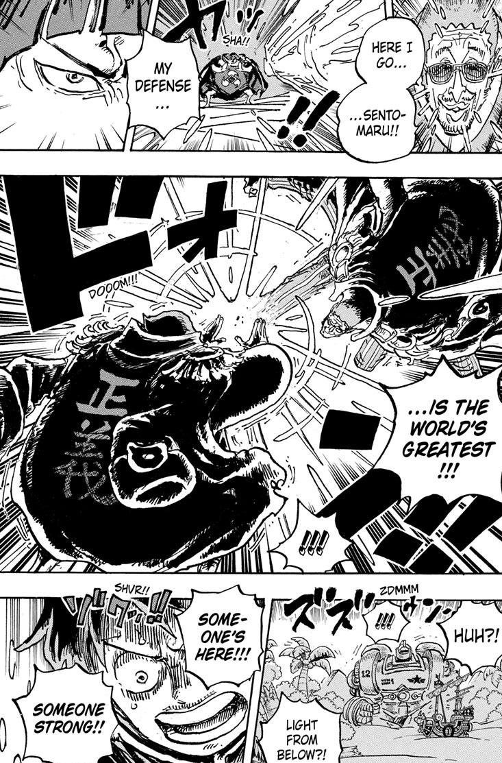 The culprit is probably York given how much Nami wants to knock the taste out of her mouth. Here’s something interesting: This is the first time Luffy talked directly with the Five Elders. It was played for laughs but that felt like a powerful moment. Hope we get another.