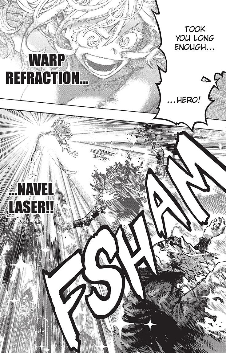 This was a good chapter! Again, not much to say. It’s a straightforward fighty-fight chapter. I wish the Toshinori/Nana flashback was longer. Oh no! Don’t, Horikoshi. Please don’t show the rest of that flashback at the end of the fight. Stop interrupting your fights with flashbacks, damn it! I swear, if you do I’m gonna give such a nipple pinch.