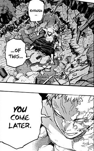 This was a good chapter! Bakugo’s a fun character to watch and I’m looking forward to him trying to take on an angry AFO. We may even see AFO use his secret Diss Track quirk. Let’s hope Kendrick Lamar doesn’t owe AFO any favors and guest star on the track or Bakugo’s doomed.