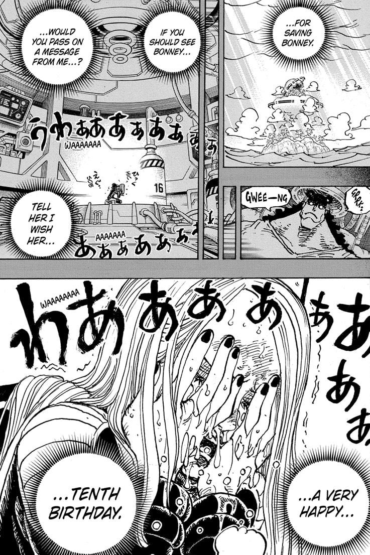 And there we have it. The life of Kuma fully revealed to us. What I absolutely love is how Kuma continued to secretly pursue his personal agenda behind the World Government’s back. Not only by helping out the Revolutionary Army (As shown in a previous chapter), but by putting his faith in Monkey D. Luffy by giving him a chance to survive in order for him to reach his full potential.
