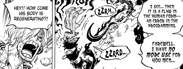 What’s up with Kuma? How is he able to function after Saturn flip his “self-destruct” switch? My answer: It’s the same reason as to how Blackbeard can hold more than one devil fruit in his body. Yeah, I’m saying Blackbeard is a Buccaneer like Kuma. If true then what do they have in common that makes them so special? Their souls? Willpower? This is a tough one. Gonna have ponder this theory more. That or e-mail Oda and ask him.