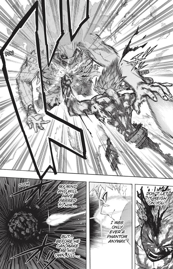 Time to test out the ramming quirks at Shigaraki theory. And, guess what? It worked! I guess opening up Shiggy’s vulnerable side also opened up his memories to Deku, who in turn, has his memories revealed to Shiggy resulting in a psychological feedback loop wherein the cranial synapses fluctuate at a non-parallel counter-clockwise — WHAT THE HELL AM I TALKING ABOUT?!