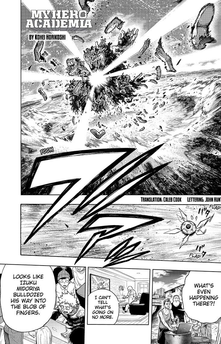 Two. Did you notice Deku wearing his middle school uniform on the last page? I’m guessing some of the young hero’s own painful memories are gonna starting playing out in front of both he and Shiggy to see. No doubt Shigaraki’s trying to keep Deku distracted from going further into his psychological search history.