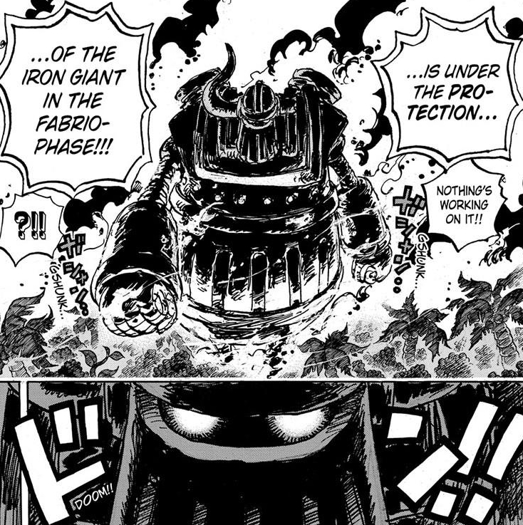 Wow! I never would’ve guessed Dr. Vegapunk put the transmission transponder snail inside of the Iron Giant. That’s quite the power play from someone York was convinced had no idea what she was secretly up to. Makes me wonder if Vegapunk Stella had just finished planting the snail inside of the Iron Giant when Luffy, Chopper, Jimbe, and Jewelry Bonney showed up in the junkyard way back in the beginning of the arc.