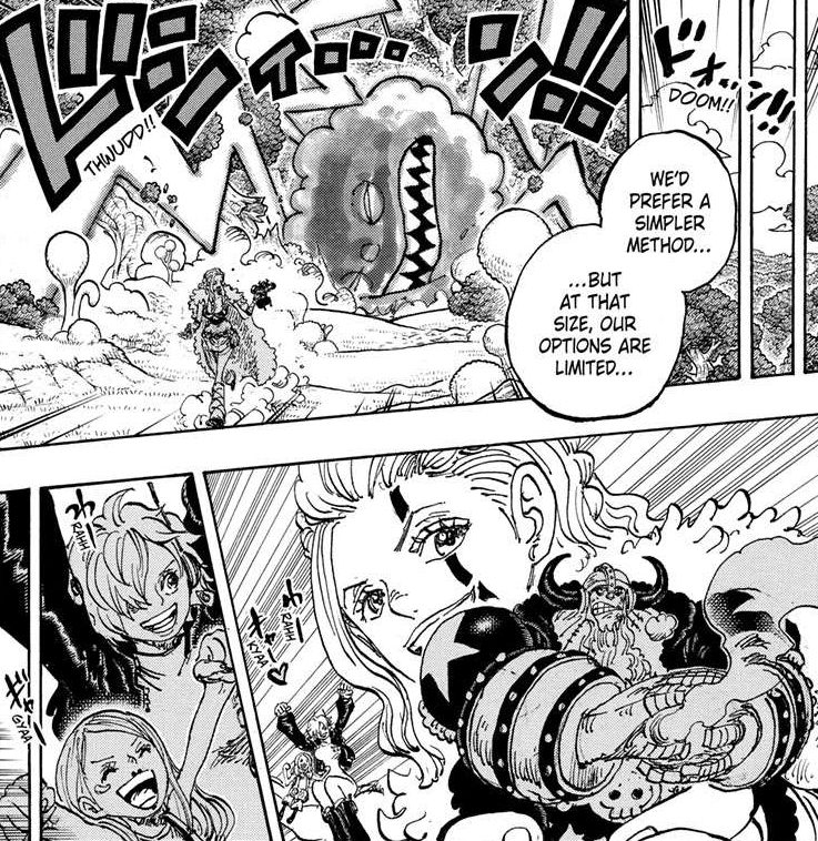 This is One Piece. There’s a high chance the Monster Trio will hear Sommer’s broadcast then travel back to Sun World and steal the spotlight. Buncha glory hogs! Give my Robin a rocket launcher and four valves of pepper spray and she’d get the job done in no time!