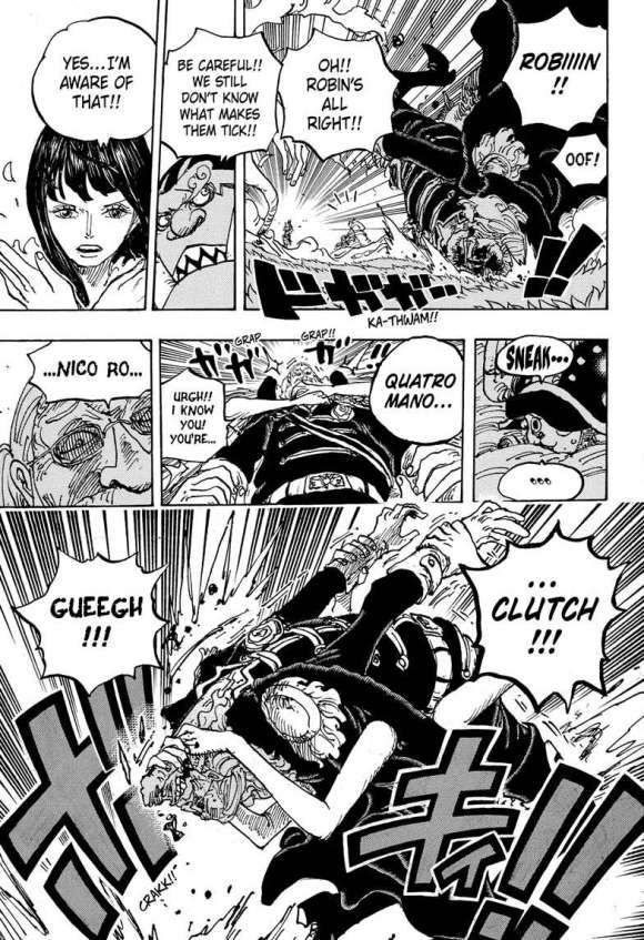 So, if it’s only conqueror’s haki that neutralizes immortality, it’s all up to Scopper Gaban. But, if it’s simply haki in general, Jimbe can get in on the action if he’s freed.