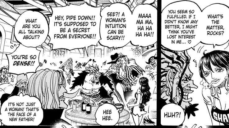 Gotta say, I’m fully on Team Rocks’ side when it comes to defeating the Celestial Dragons. Rocks knows the World Government’s evil. Too bad he couldn’t convince Harald of that. When the Rocks Pirates implode, I wonder if Rocks will seek Harald’s help one last time. It’ll be a bit of a long shot considering Harald needs him dead, but maybe ole Xebec has one final card to play. You know, the Fake-My-Death Card.