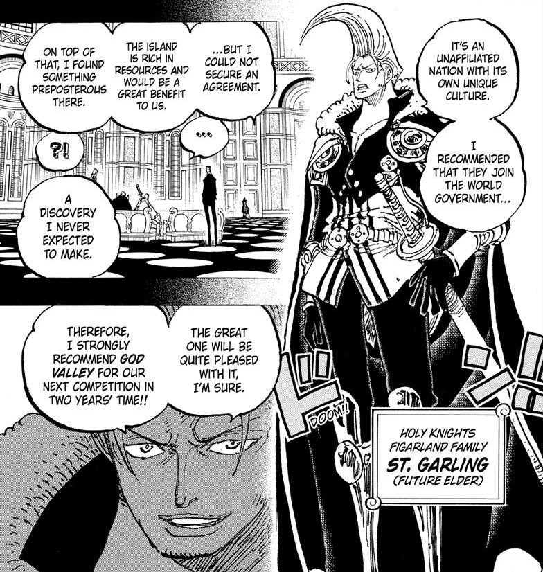 Whatever it is, he believes Imu would be interested, so that crosses out reality tv and country music. My guess, Garling either discovered a Road Ponegliff or something related to Joy Boy. Maybe God Valley’s where the OG pirate was laid to rest after dying.