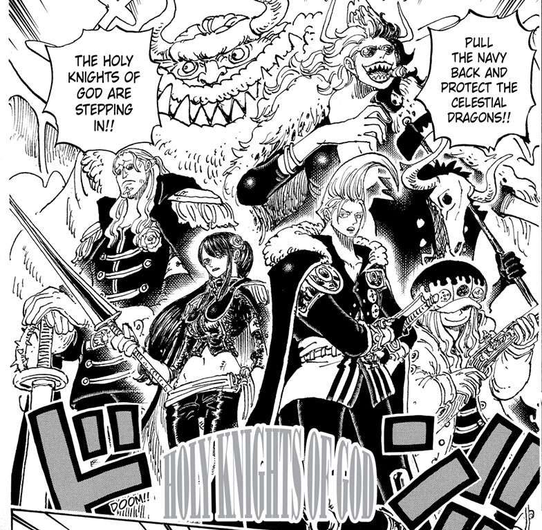 Don’t worry my dear Celestial Dragons fans. God’s Knights are here to protect our favorite bubbleheaded royals. The official English translation calls them Holy Knights of God, but that’s just Japanese translator Stephen Paul trying to fix his disgusting mistake. Hey, Viz! Stop wasting time and cancel that hack already!