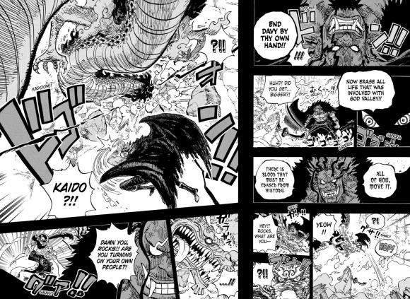 Seriously, Oda? Big Mom, Kaido, and Edward Newgate never noticed their CAPTAIN—whose body grew larger, gained monstrous fangs, sounds different, and sprouted WINGS—was being controlled by the giant monster who’d impaled him just a moment ago?