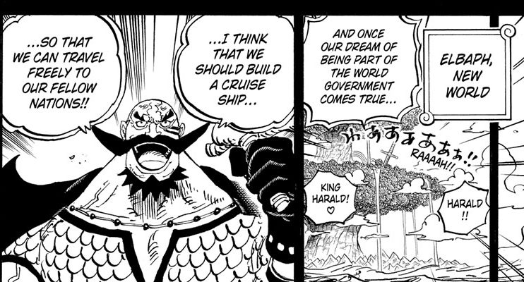 Did Harald have to be portrayed so oblivious to the Five Elders and Celestial Dragons, in general? They own slaves! They consider anyone not a Celestial Dragon as inferior! They attack weak countries not affiliated with the World Government! This makes ZERO sense that Harald didn’t pick up on all of that and, instead, put HIS ENTIRE TRUST into the World Government and the mysterious guy you swore totally loyalty too!