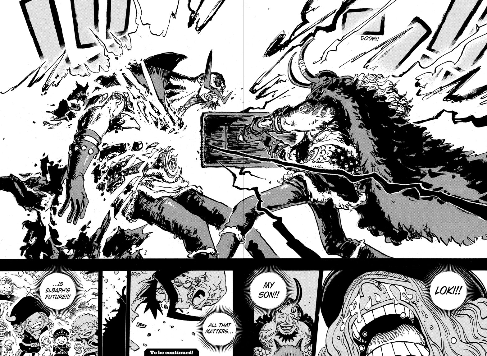 The flashback itself seems less about the drama (which is hard for me to get into because of how stupid Harald had to act to get into this situation) and more about Oda holding off revealing Loki’s devil fruit ability and Ragnir for as long as possible. And even now, Loki’s devil fruit didn’t get a full reveal because Oda must wait until the big super awesome fight against Imu in Elbaph to unveil it. But, I’m sure it’s all gonna be worth it.